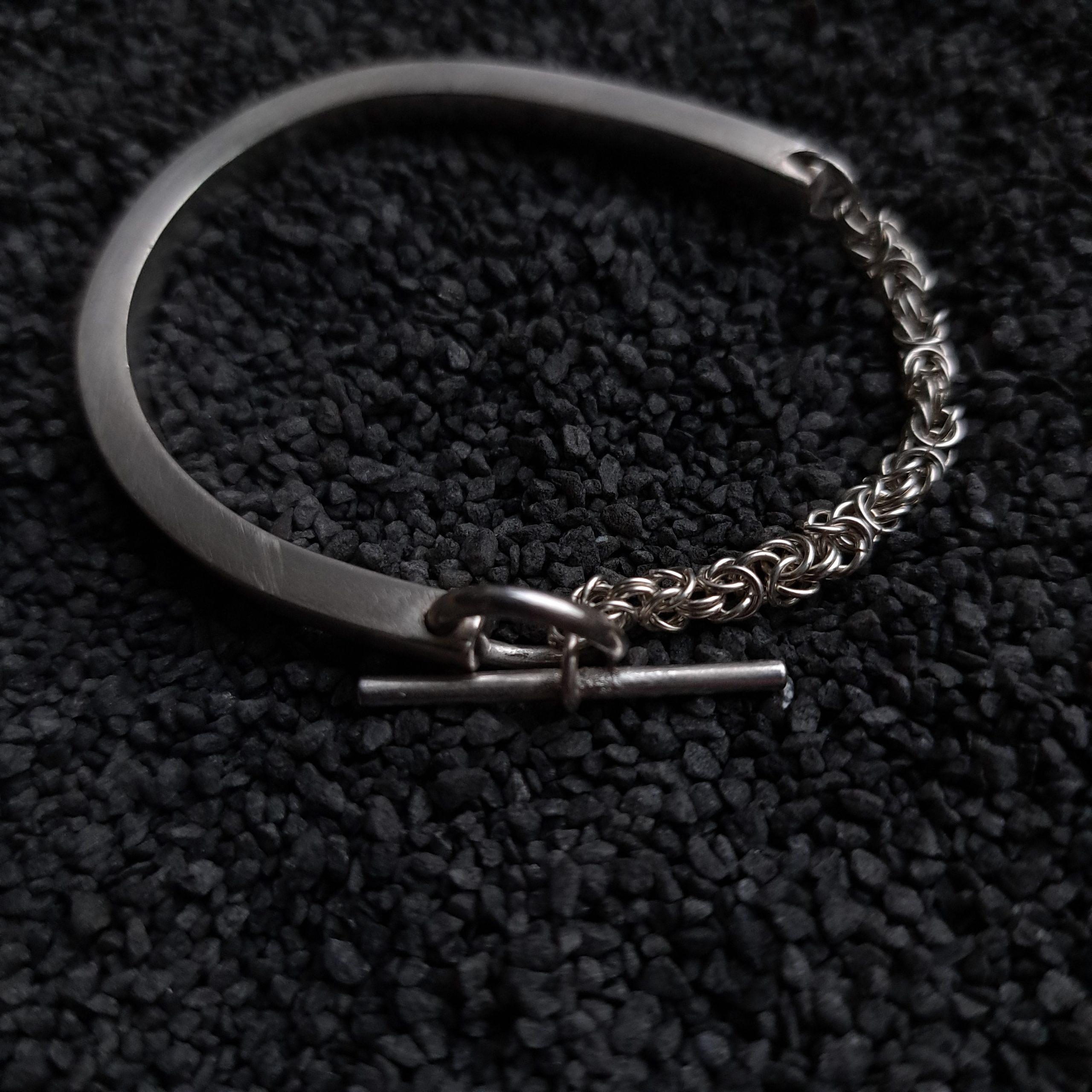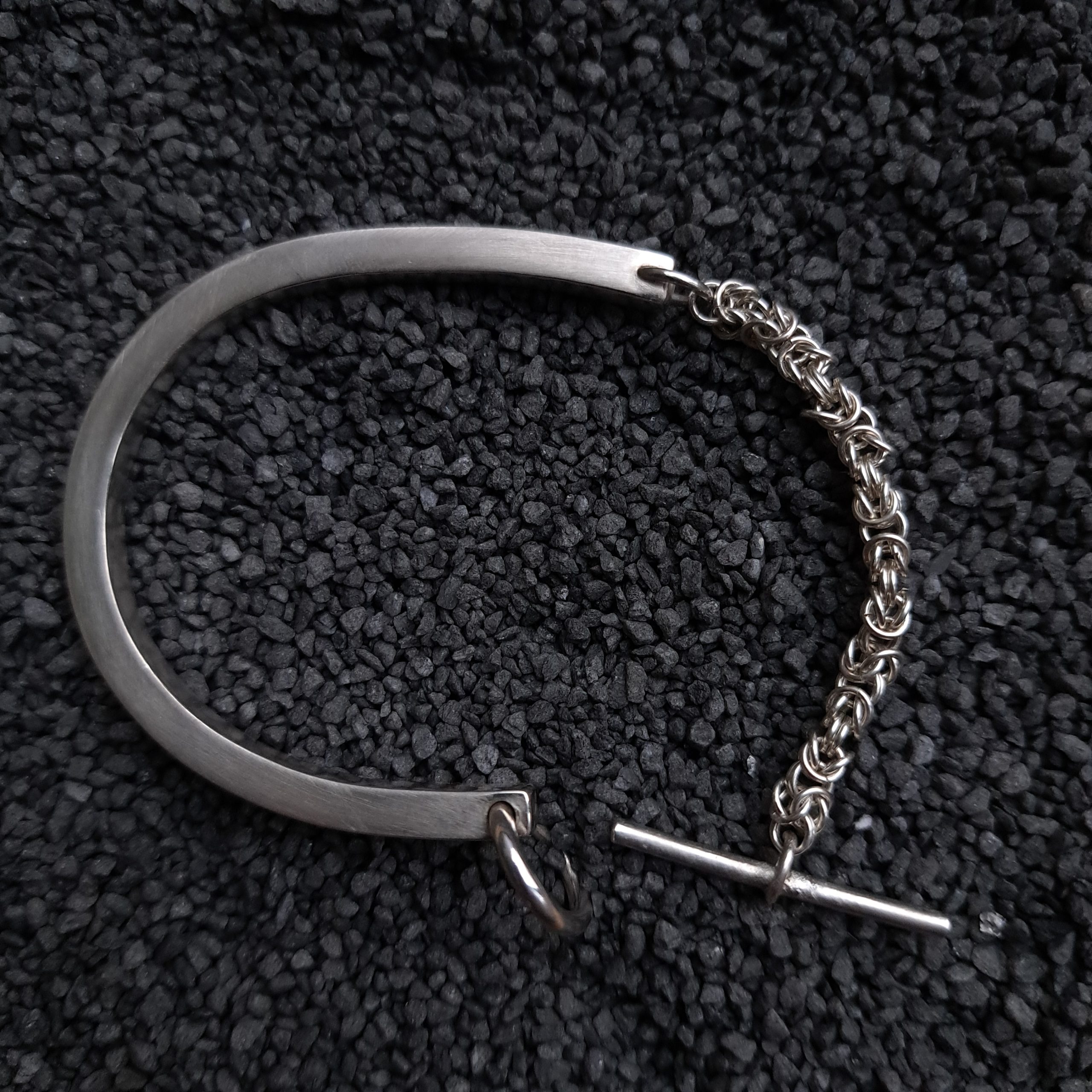 Jonc rigide finition brossée mat et maille royale en argent 925°°°